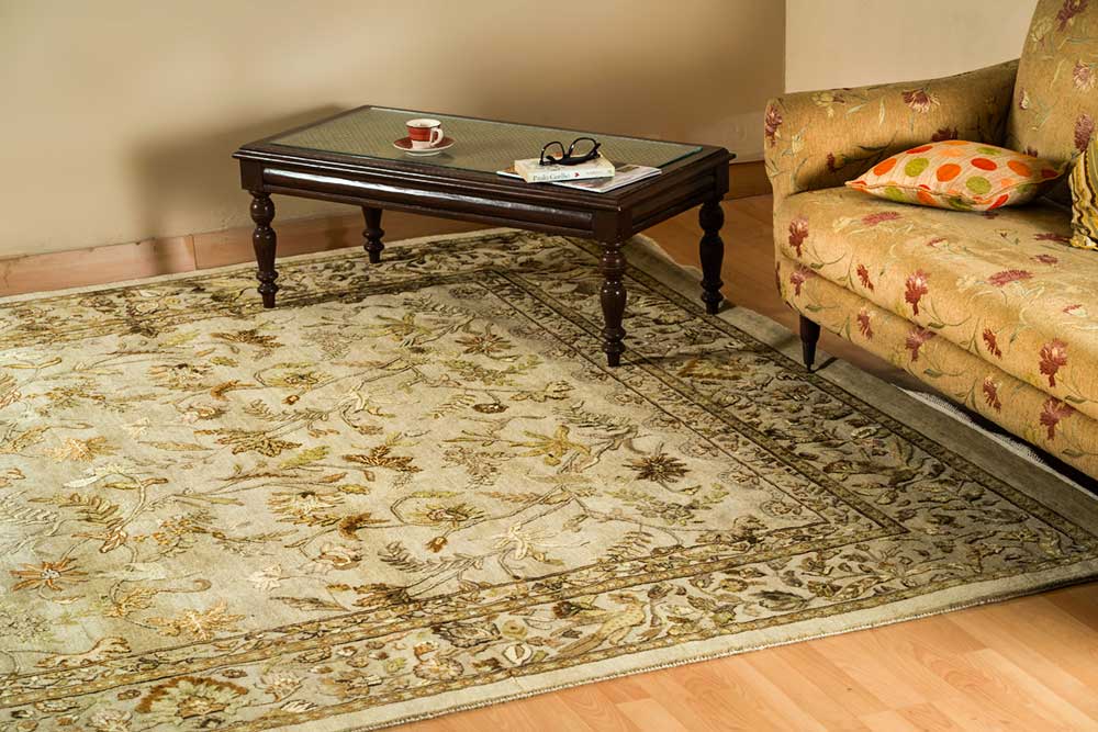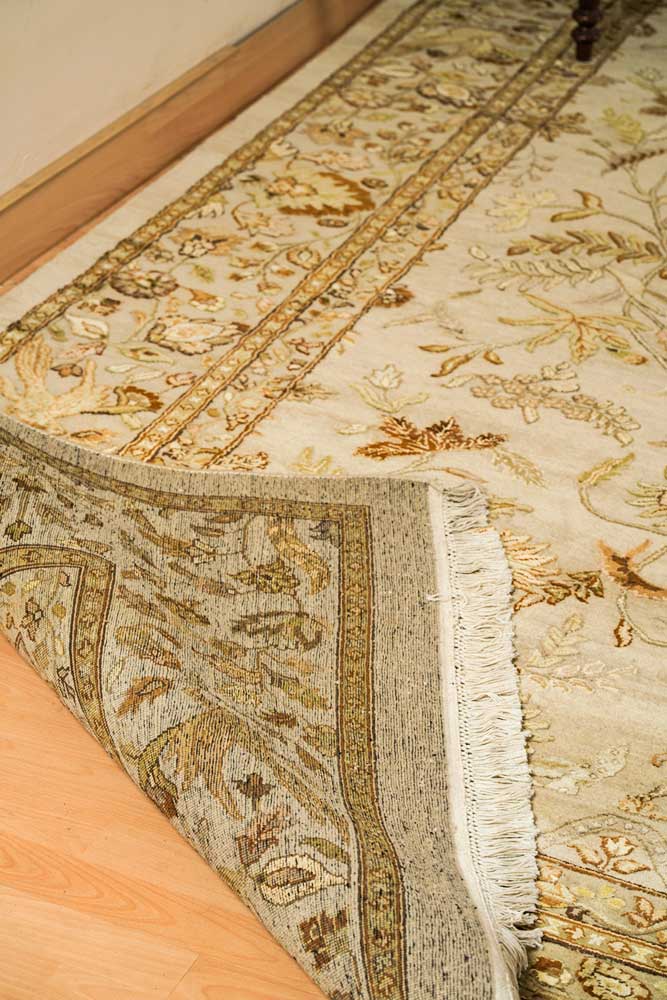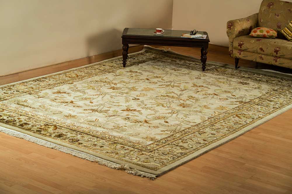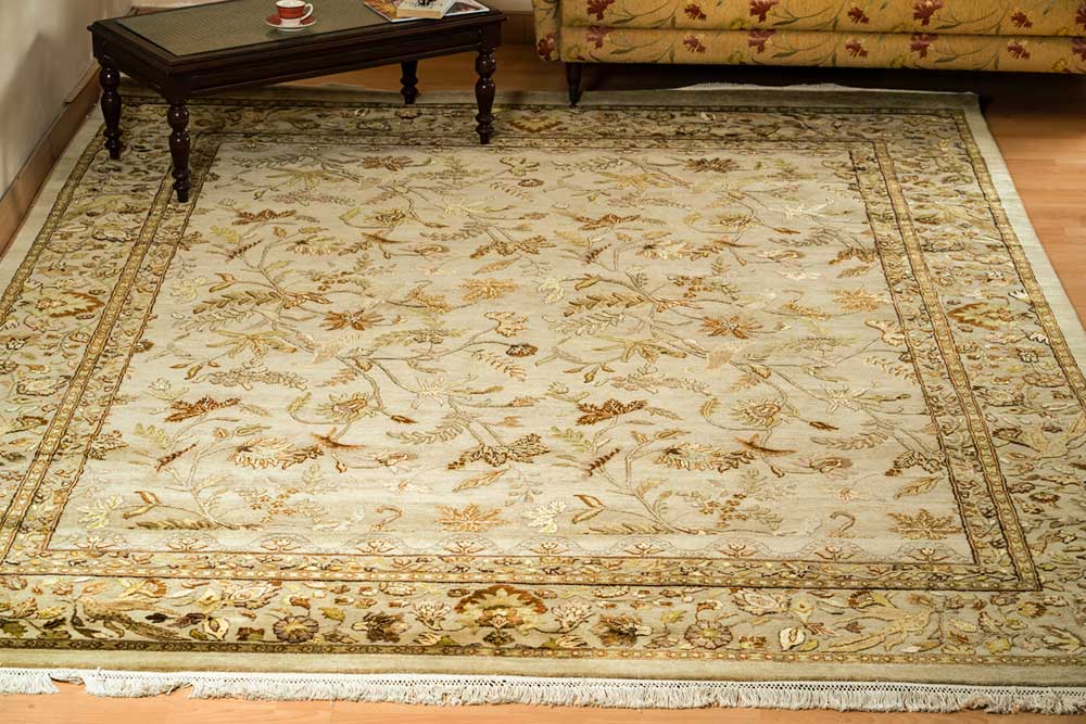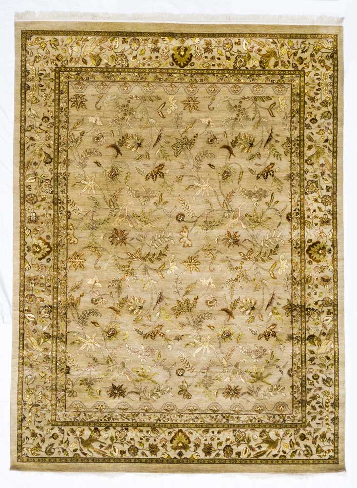 Dispatch Product description – These uniquely colored Persian and Indian design is made with wool & silk and is hand-knotted in a tight 10 x 10 quality, dense construction suitable for high traffic areas. Best quality ever, this stunning rug has world-class hand-spun wool & silk; an exceptional weave and value for money.