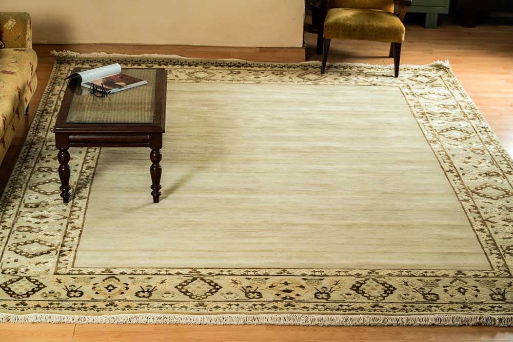 Dispatch Product description – These uniquely colored Persian and Indian design is made with wool & silk and is hand-knotted in a tight 10 x 10 quality, dense construction suitable for high traffic areas. Best quality ever, this stunning rug has world-class hand-spun wool & silk; an exceptional weave and value for money.