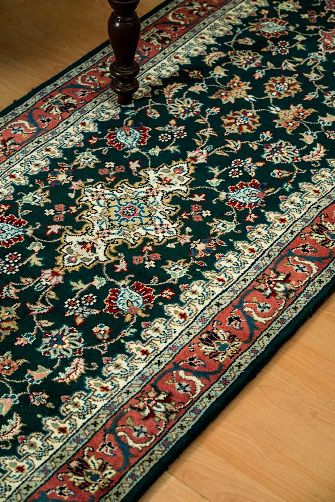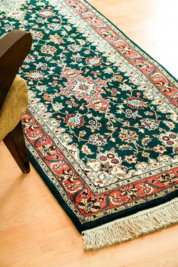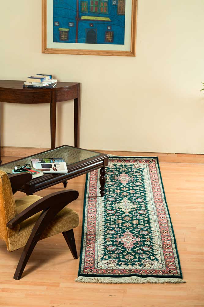 Dispatch Product description – These uniquely colored Persian and Indian design is made with wool and is hand-knotted in a tight 10 x 10 quality, dense construction suitable for high traffic areas. Best quality ever, this stunning rug has world-class hand-spun wool; an exceptional weave and value for money.