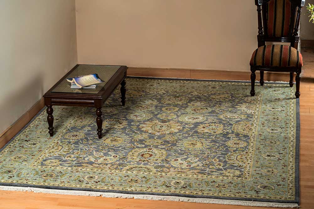 Dispatch Product description – These uniquely colored Persian and Indian design is made with wool and is hand-knotted in a tight 10 x 10 quality, dense construction suitable for high traffic areas. Best quality ever, this stunning rug has world-class hand-spun wool; an exceptional weave and value for money.