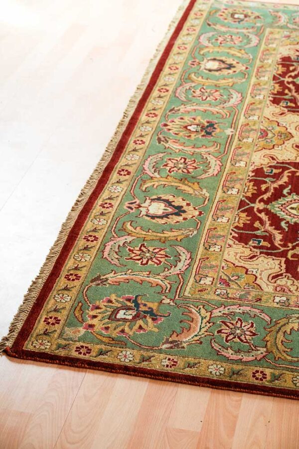 Dispatch Product description – These uniquely colored Persian and Indian design is made with wool and is hand-knotted in a tight 10 x 10 quality, dense construction suitable for high traffic areas. Best quality ever, this stunning rug has world-class hand-spun wool; an exceptional weave and value for money.