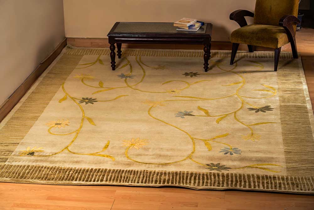 Dispatch Product description – These uniquely colored Persian and Indian design is made with wool & silk and is hand-knotted in a tight 10 x 10 quality, dense construction suitable for high traffic areas. Best quality ever, this stunning rug has world-class hand-spun wool & silk; an exceptional weave and value for money.