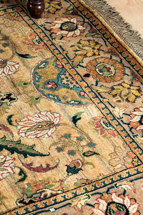 Dispatch Product description – These uniquely colored Persian and Indian design is made with wool and is hand-knotted in a tight 10 x 10 quality, dense construction suitable for high traffic areas. Best quality ever, this stunning rug has world-class hand-spun wool; an exceptional weave and value for money.