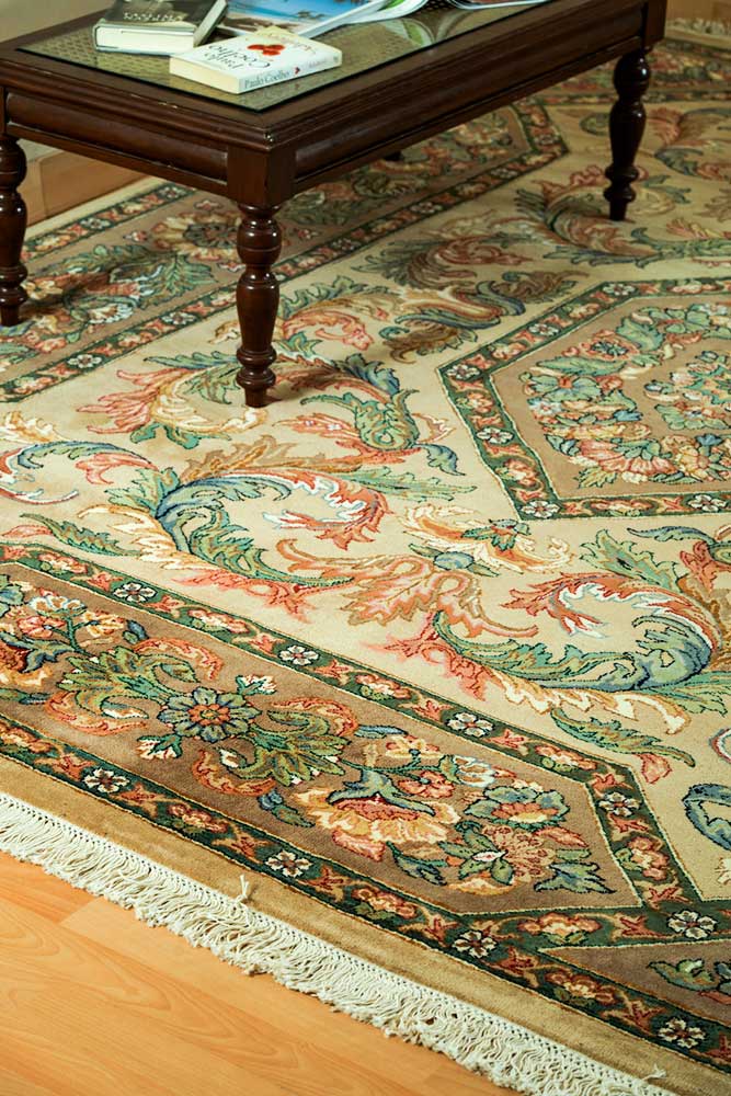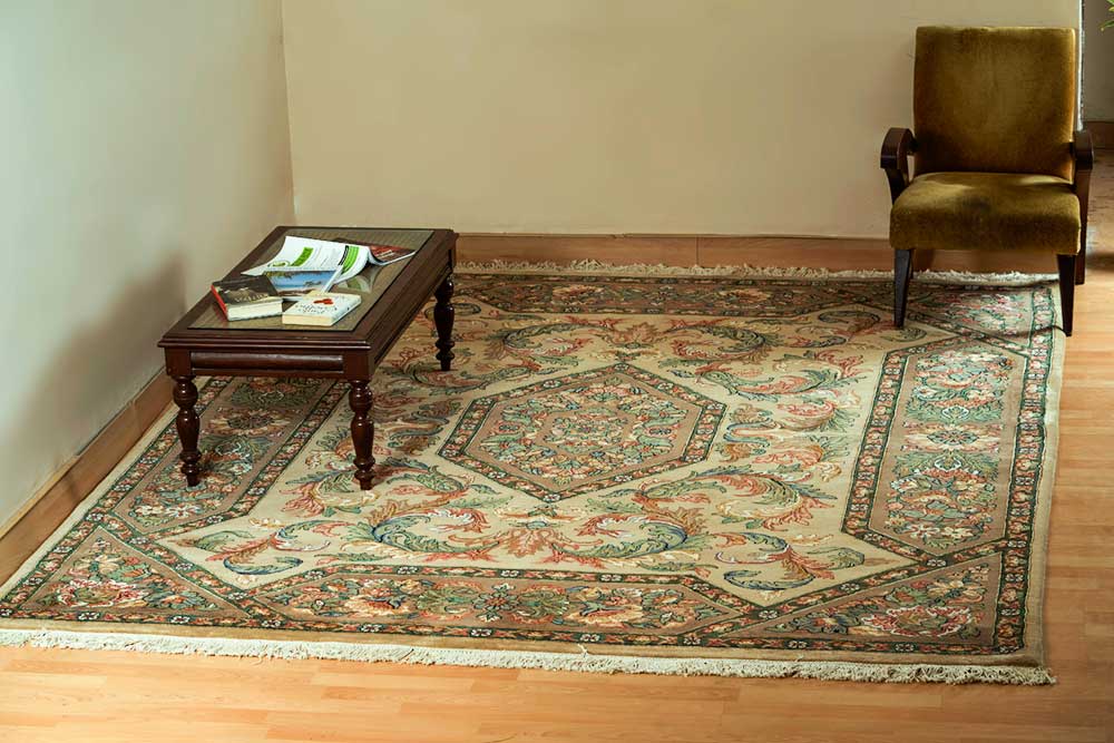 Dispatch Product description – These uniquely colored Persian and Indian design is made with wool and is hand-knotted in a tight 10 x 10 quality, dense construction suitable for high traffic areas. Best quality ever, this stunning rug has world-class hand-spun wool; an exceptional weave and value for money.