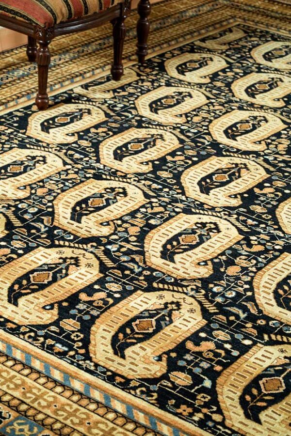 Dispatch Product description – These uniquely colored Persian and Indian design is made with wool and is hand-knotted in a tight 10 x 10 quality, dense construction suitable for high traffic areas. Best quality ever, this stunning rug has world-class hand-spun wool; an exceptional weave and value for money.