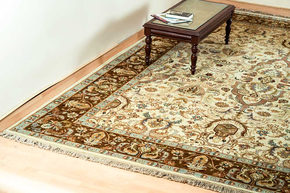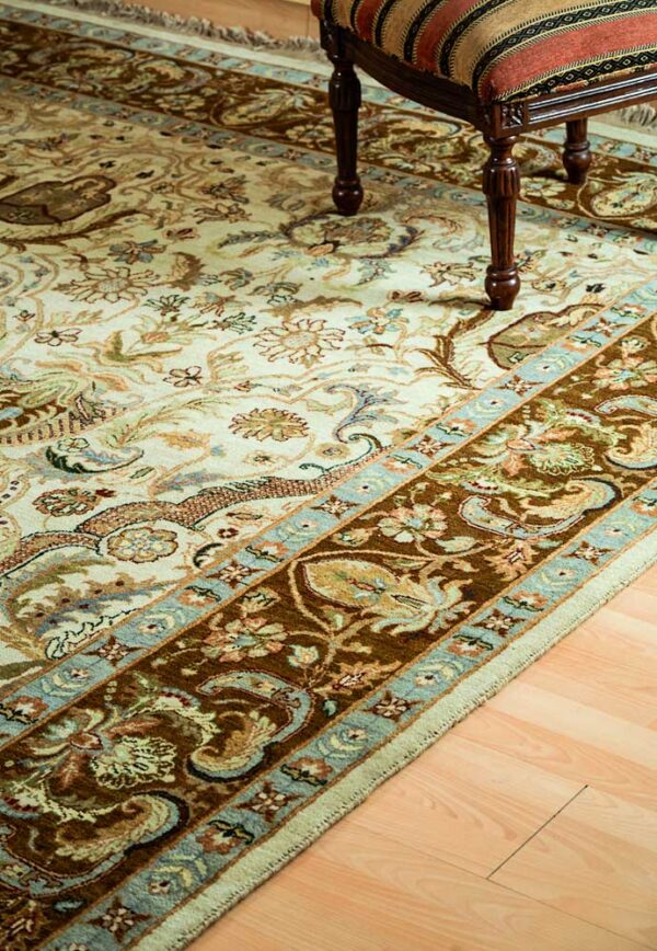 Dispatch Product description – These uniquely colored Persian and Indian design is made with wool and is hand-knotted in a tight 10 x 10 quality, dense construction suitable for high traffic areas. Best quality ever, this stunning rug has world-class hand-spun wool; an exceptional weave and value for money.