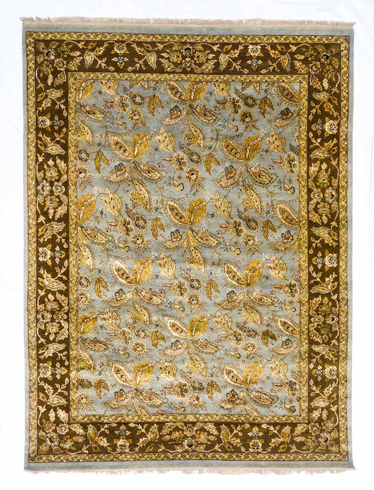 Dispatch Product description –  These uniquely colored Persian and Indian design is made with wool & silk and is hand-knotted in a tight 10 x 10 quality, dense construction suitable for high traffic areas. Best quality ever, this stunning rug has world-class hand-spun wool & silk;  an  exceptional weave and value for money.