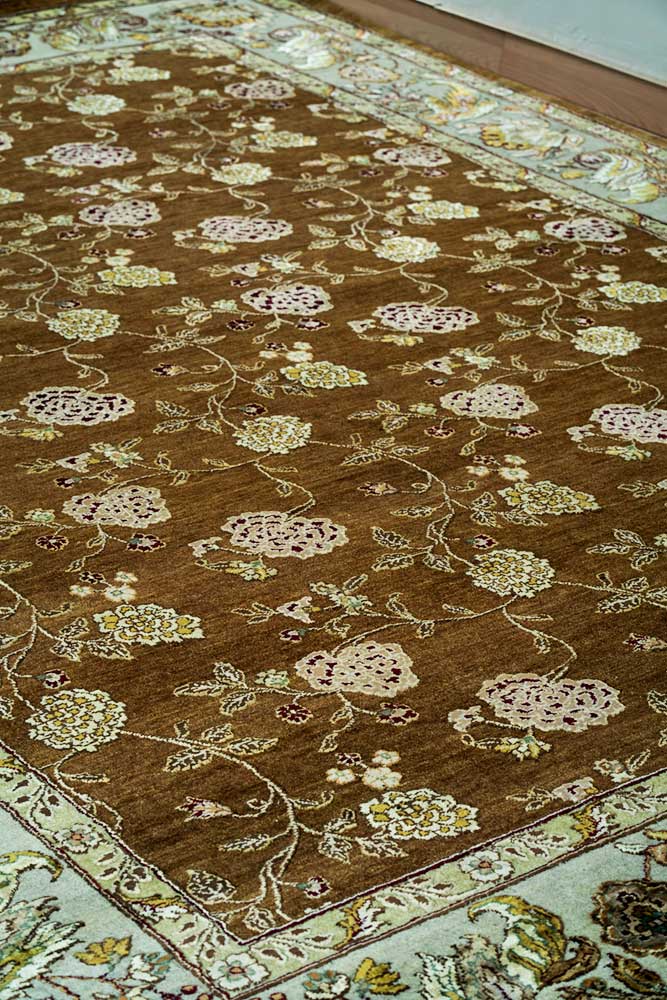 Dispatch Product description – These uniquely colored Persian and Indian design is made with wool & silk and is hand-knotted in a tight 10 x 10 quality, dense construction suitable for high traffic areas. Best quality ever, this stunning rug has world-class hand-spun wool & silk; an exceptional weave and value for money.