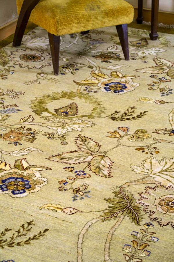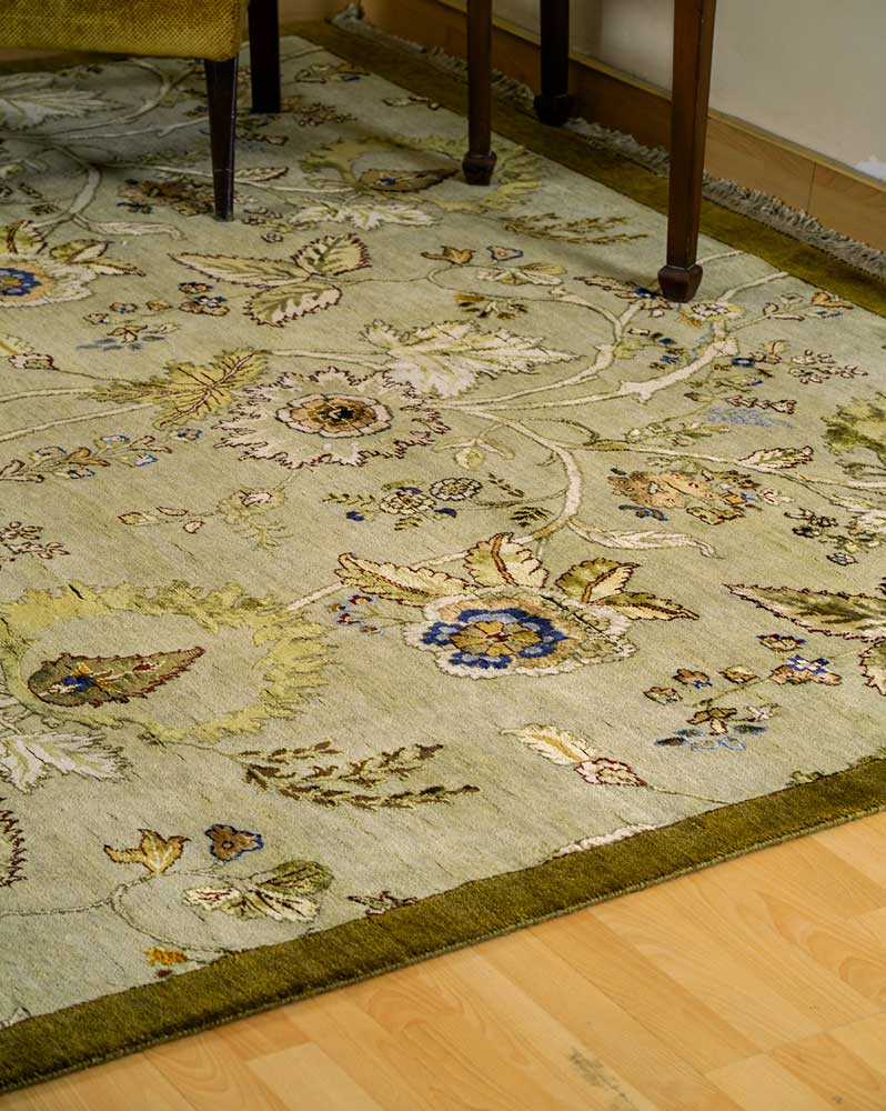 Dispatch Product description – These uniquely colored Persian and Indian design is made with wool & silk and is hand-knotted in a tight 10 x 10 quality, dense construction suitable for high traffic areas. Best quality ever, this stunning rug has world-class hand-spun wool & silk; an exceptional weave and value for money.