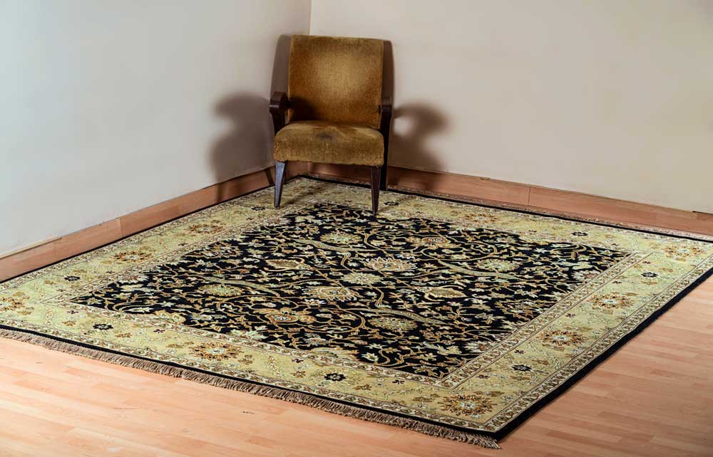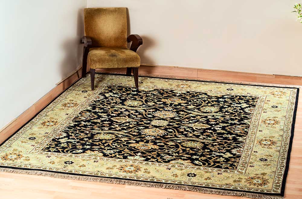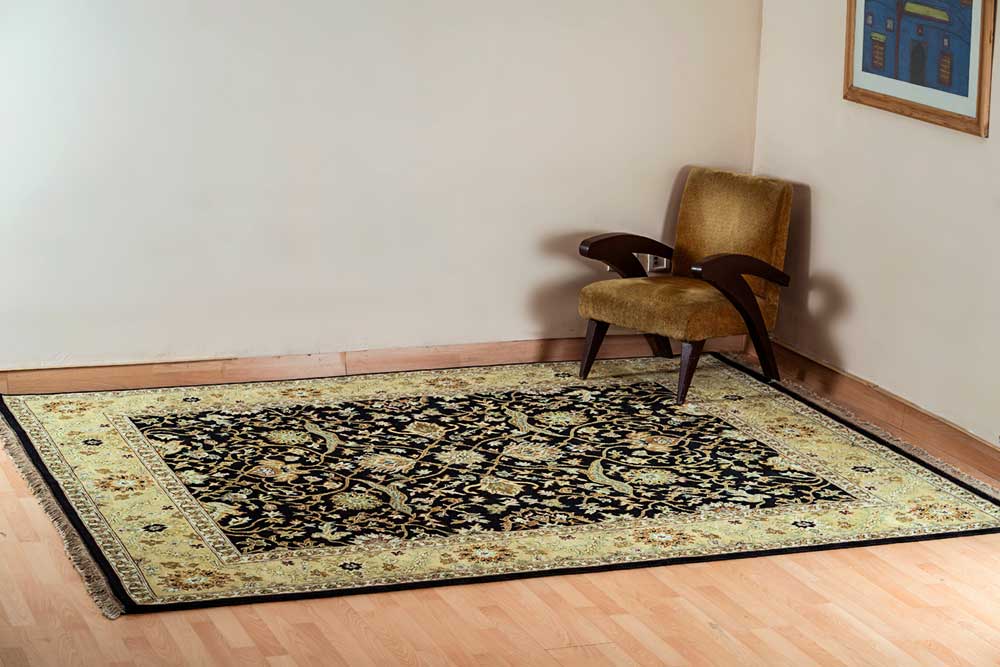 Dispatch Product description – These uniquely colored Persian and Indian design is made with wool and is hand-knotted in a tight 10 x 10 quality, dense construction suitable for high traffic areas. Best quality ever, this stunning rug has world-class hand-spun wool; an exceptional weave and value for money.