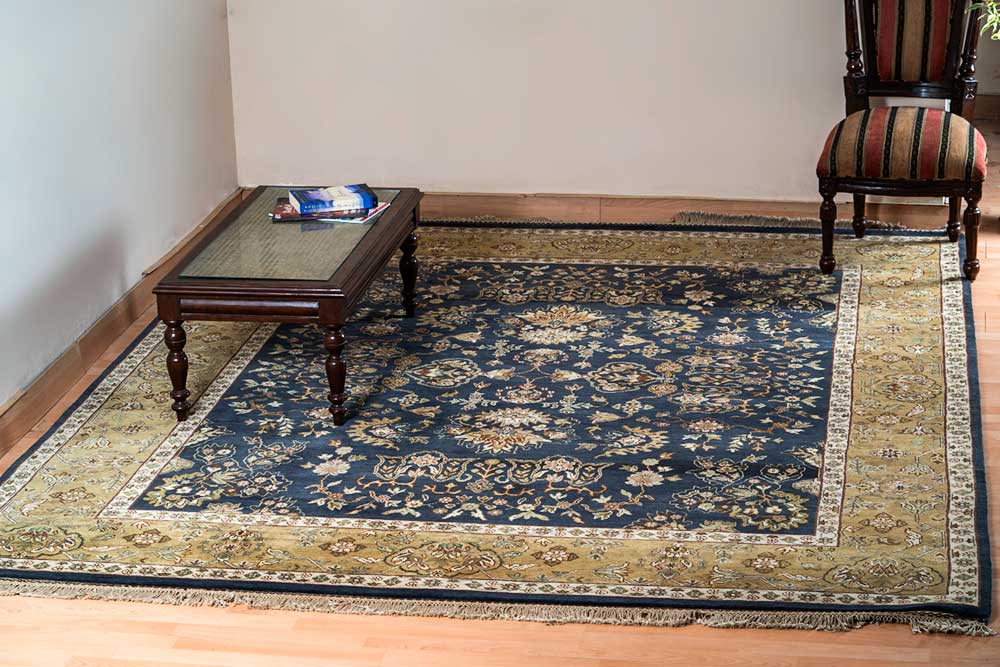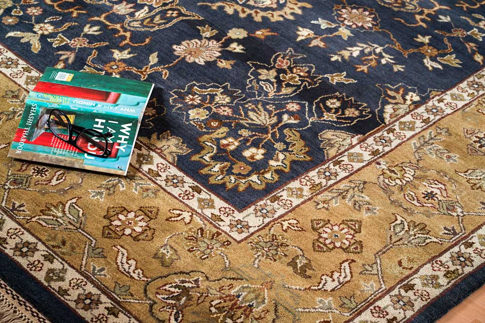 Dispatch Product description – These uniquely colored Persian and Indian design is made with wool and is hand-knotted in a tight 10 x 10 quality, dense construction suitable for high traffic areas. Best quality ever, this stunning rug has world-class hand-spun wool; an exceptional weave and value for money.