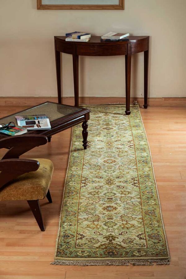 Dispatch Product description – These uniquely colored Persian and Indian design is made with wool and is hand-knotted in a tight 10 x 10 quality, dense construction suitable for high traffic areas. Best quality ever, this stunning rug has world-class hand-spun wool; an exceptional weave and value for money.