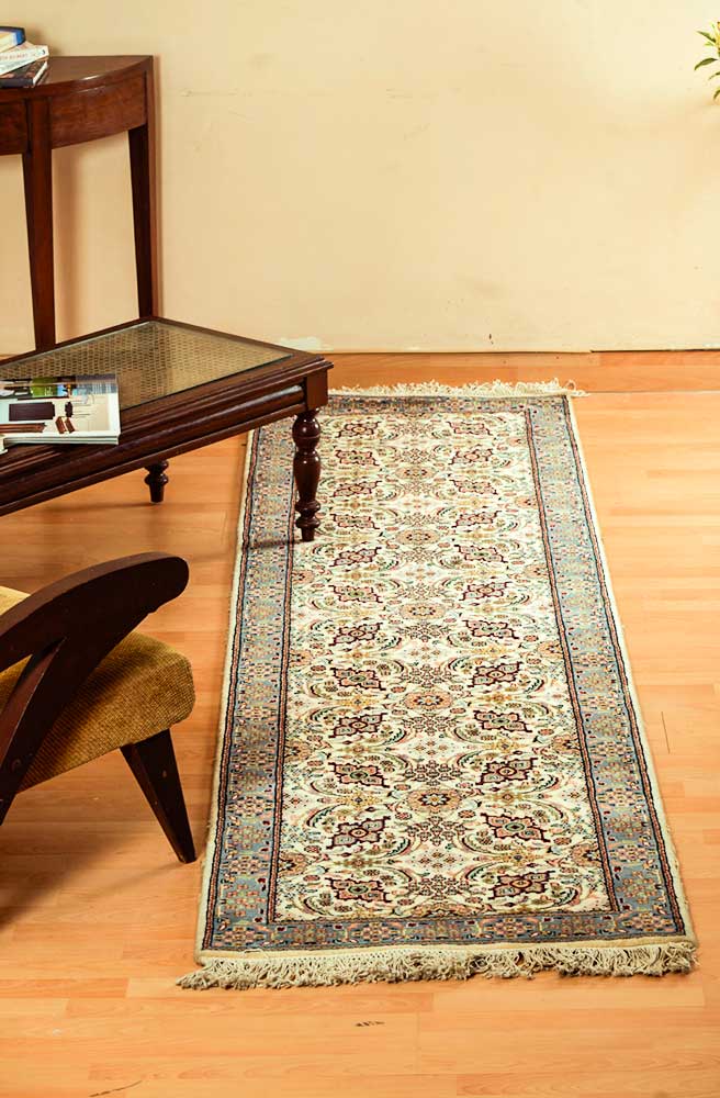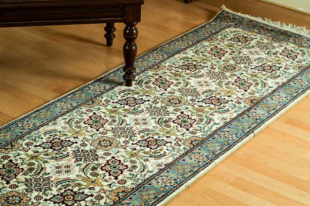 Dispatch Product description – These uniquely colored Persian and Indian design is made with wool and is hand-knotted in a tight 10 x 10 quality, dense construction suitable for high traffic areas. Best quality ever, this stunning rug has world-class hand-spun wool; an exceptional weave and value for money.