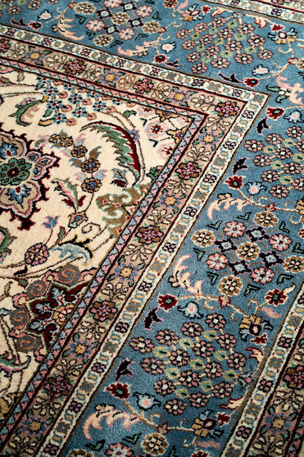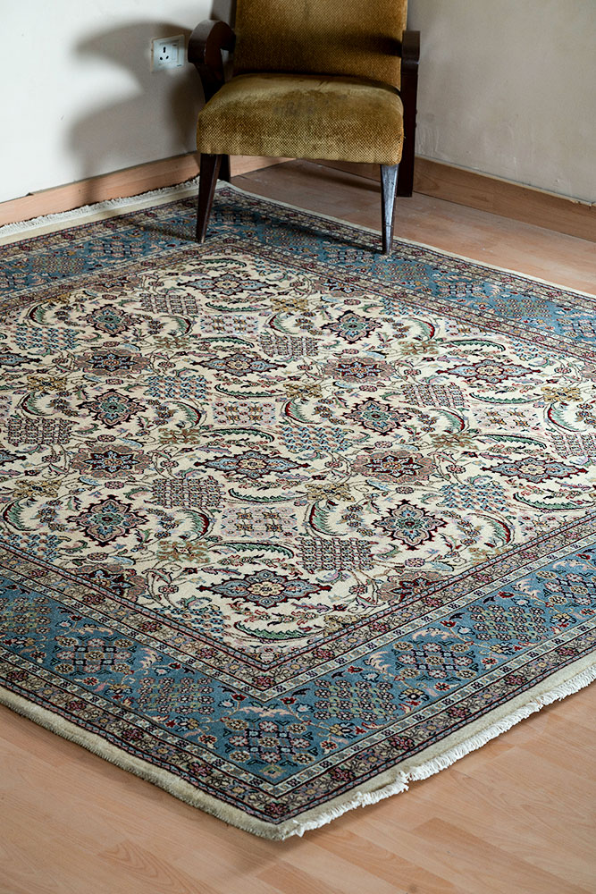 Dispatch Product description – These uniquely colored Persian and Indian design is made with wool and is hand-knotted in a tight 10 x 10 quality, dense construction suitable for high traffic areas. Best quality ever, this stunning rug has world-class hand-spun wool; an exceptional weave and value for money.